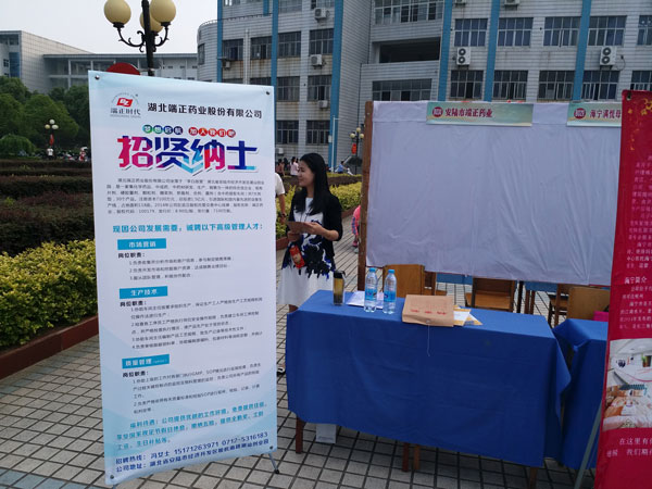 2017年5月20日我公司代表參加湖北職業(yè)技術(shù)學院2017年醫(yī)護類招聘,此次招聘主要崗位有:市場營銷、生產(chǎn)技術(shù)、質(zhì)量管理等,為廣大畢業(yè)生提供了就業(yè)機會,提供優(yōu)越的工作環(huán)境,免費提供住宿、享受國家規(guī)定節(jié)假日休息,繳納五險,提供全勤獎、工齡工資、生日補貼等福利待遇,受到了學生們熱情的追捧,紛紛遞上自己個人求職申請表,希望加入湖北端正藥業(yè),成員這個大家庭的一員。